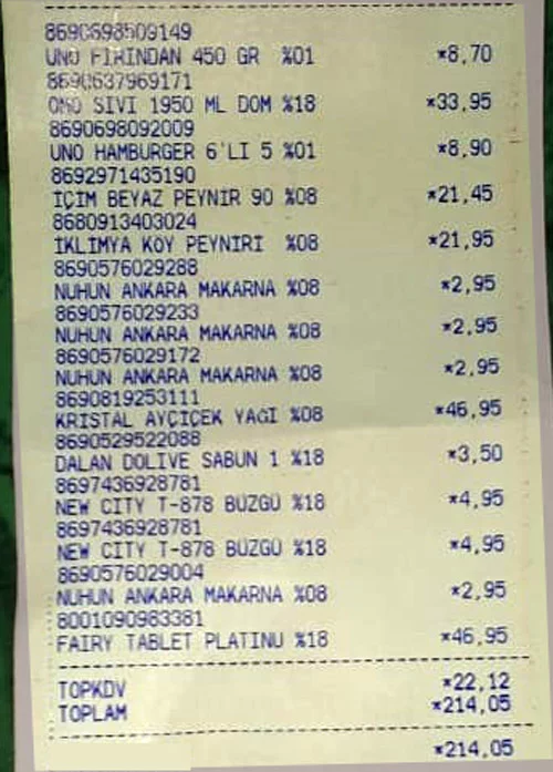 Günümüzde gıda ve temizlik ürünü almak oldukça sıkıntılı hale geldi. 15 günde 4 kişilik normal bir ailenin alışveriş listesi ve ürünleri aşağıda anlattık. Yaklaşık 750 TL tutan bu liste ülkemizde “normal” geçinen bir aileye ait. Bu fiyat verilerini bildiğiniz üzere diğer aktüel sitelerimizde istatistiki amaç için ayrıca kullanıyoruz. Ancak alışveriş listelerini takip ettiğiniz ve fiyatları fişleri ile görmek istediğiniz için ayrıca burada bunları da yayınlıyoruz. İşte haziran ayının yarısına ait alışveriş listesi ve fiyatları!
